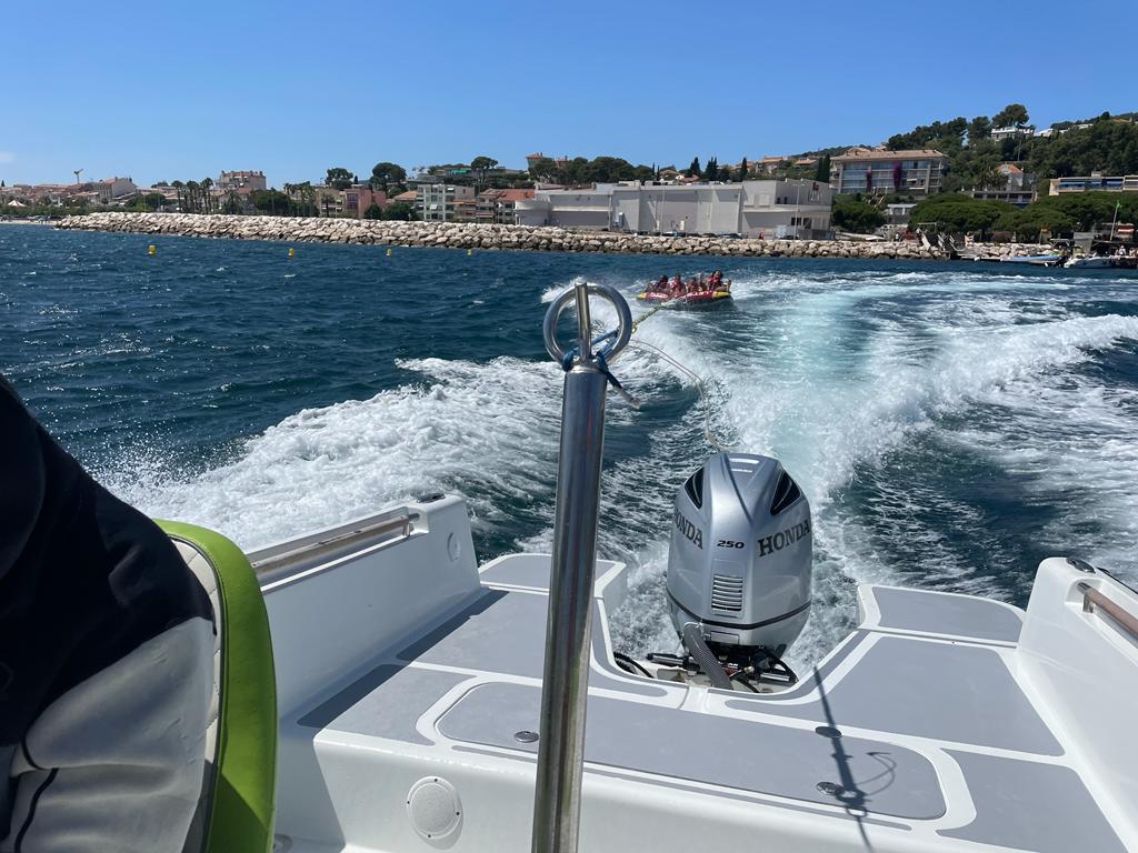Superbes expériences grâce à Bandol Sports Nautiques, nous avons fait les bouées tractées lundi, c’était génial !! et le jet ski jeudi avec Louis, qui est au top !!
